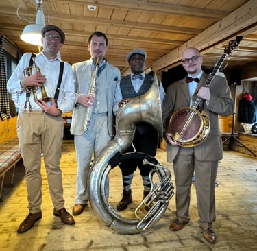 Am Banjo, Daniel „Siggi“ Siegmund - längst kein Geheimtipp mehr! Ein absoluter Virtuose an den vier Saiten, sodass selbst führende Musiker ihn bereits als einen der besten Banjoisten des Landes bezeichnen. Daniel spielt in diversen Formationen und ist auch über die deutschen Grenzen hinaus bekannt